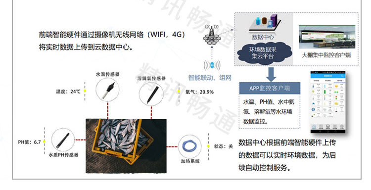 智慧水产养殖解决方案集成智能水质传感器、无线传感器网络、远程数据通信、智能管理系统和视频监控系统等技术对养殖水…